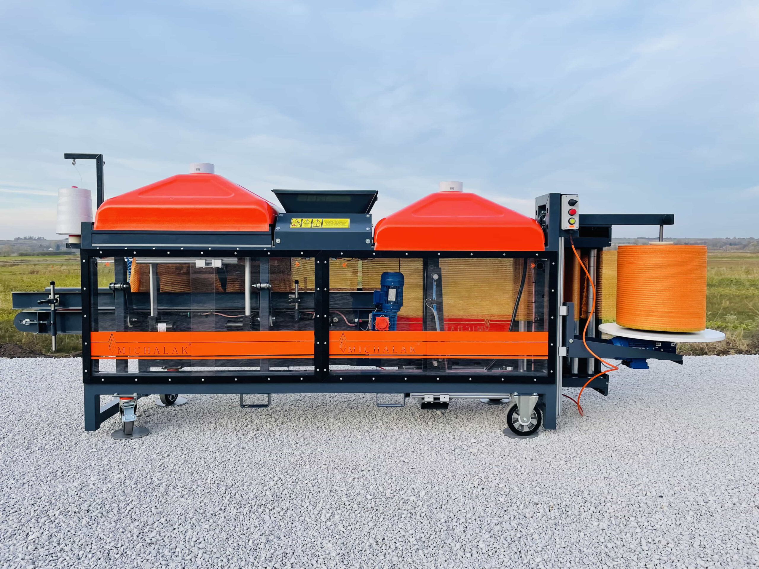Après être rempli, le sac est cousu. A cette étape une bande en PE pré imprimée peut être cousue dans la fermeture pour identification du producteur.