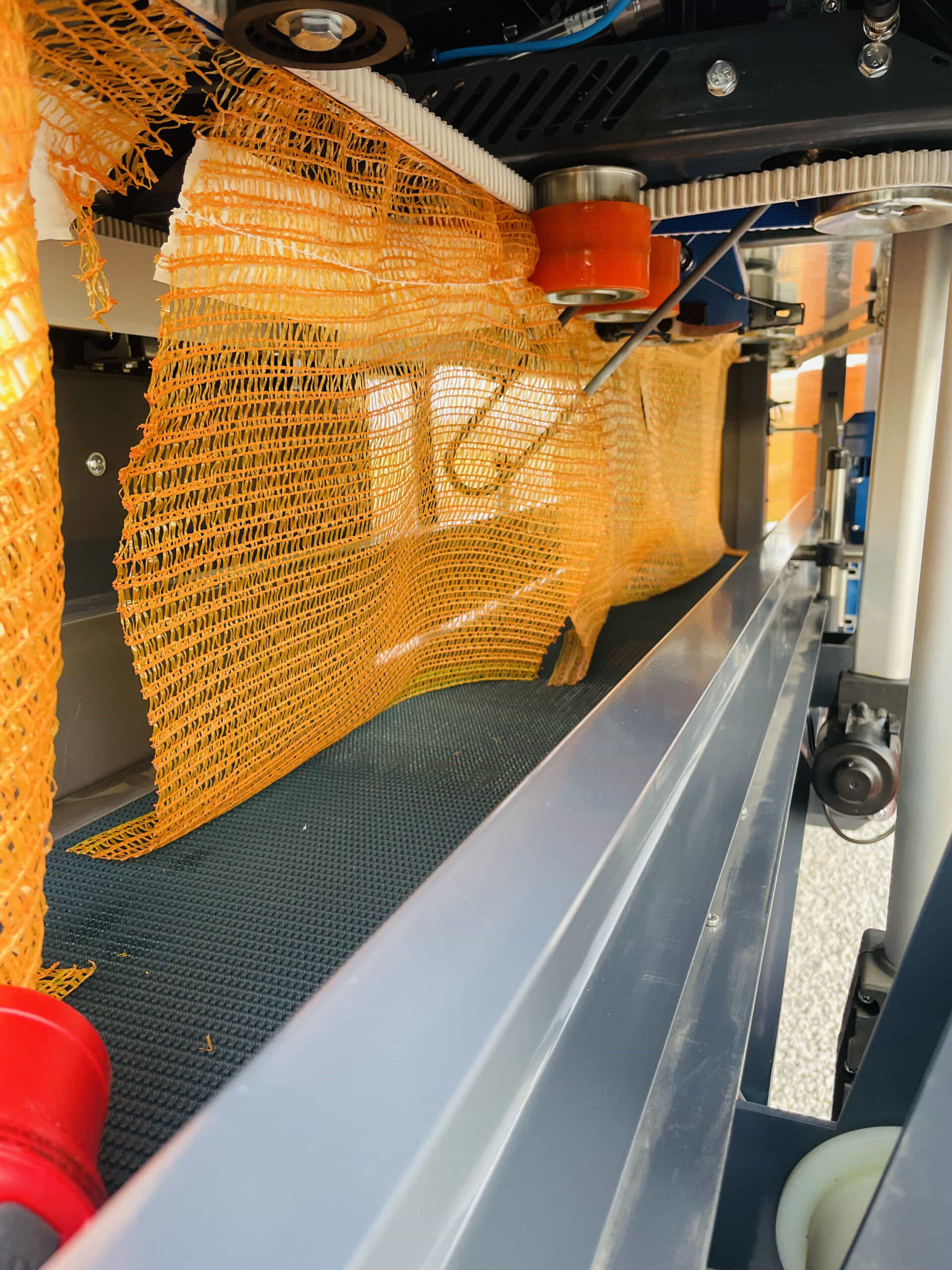 Le sac est déroulé d’une bobine, coupé et ensuite rempli de légumes.