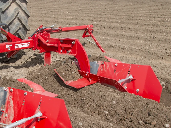 La formation parfaite des billons est essentielle pour une séparation efficace. Deux corps différents sont disponibles selon la nature des sols. Un grand corps BF est idéal pour des sols moyens à lourds, même riches en pierres et en mottes. Pour les sols plus légers, on utilise un corps BFL avec un long racleur, ainsi le flanc des billons est pressé sur les côtés et il n’y a pas de perte de terre. Pour travailler les sols non ameublis, l’appareil peut être équipé de l’option dents sous-soleuses.