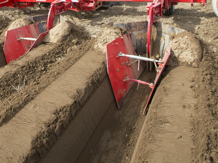 La formation parfaite des billons est essentielle pour une séparation efficace. Deux corps différents sont disponibles selon la nature des sols. Un grand corps BF est idéal pour des sols moyens à lourds, même riches en pierres et en mottes. Pour les sols plus légers, on utilise un corps BFL avec versoirs longs, ainsi le flanc des billons est pressé sur les côtés et il n’y a pas de perte de terre. Pour travailler les sols non ameublis, l’appareil peut être équipé de l’option dents sous-soleuses.
