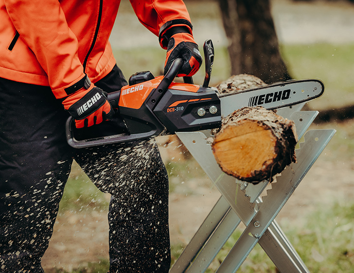 - Se démarre très facilement. Pas de fil électrique, pas de mélange. Enclenchez la batterie, mettez sous tension et c’est parti. Le frein de chaîne électronique augmente la sécurité de l’utilisateur, et son design compact la rend très maniable et facile à utiliser.