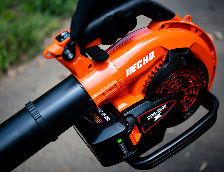 Le souffleur ECHO DPB-2600 est le premier souffleur à main à batterie disposant d’une prise d’air des 2 côtés. La quantité d’air prise des 2 côtés est la même offrant 2 avantages majeurs: une augmentation de la puissance et l’élimination de l’effet gyroscopique. Ne pesant que 2,5 kg (sans batterie), il est plus léger que le PB-2620. Un autre avantage clef est son design compact, symétrique et équilibré, qui combiné à son poids très léger, vous permet de travailler pendant longtemps sans problème. Les pales au niveau de la prise d’air ont été repensées pour que cela produise moins de bruit. Cet appareil est le plus avancé technologiquement des souffleurs à mains depuis que nous avons créé le premier souffleur à main en 1978. C’est un véritable souffleur à main professionnel à batterie dont les performances dépassent certains appareils thermiques.