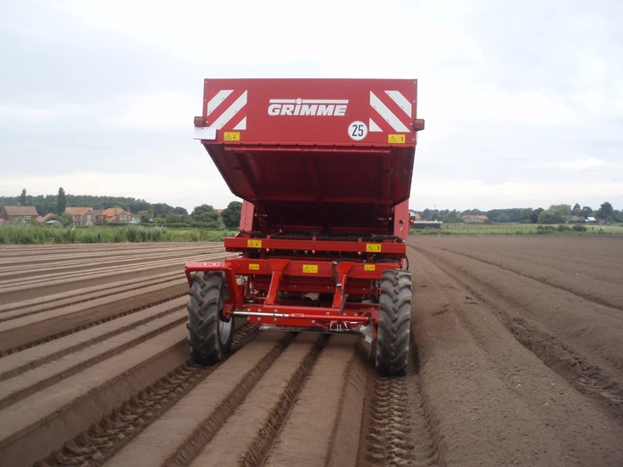 Pour planter les pommes de terre non calibrées, de tailles différentes ou de variétés allongées, il convient de choisir une planteuse à courroies. Pour des tailles appropriées, la vitesse d’avancement peut être supérieure à celle d’une planteuse à godets. La GB 330 est spécialement conçue pour la plantation en 3 rangs en billons. Grâce à une meilleure répartition par rapport aux autres méthodes de plantation, la croissance des tubercules est plus régulière. Il en résulte une plus grande proportion de produit à commercialiser. La machine peut être équipée, par exemple, avec un distributeur d’engrais et de granulés, un équipement de traitement du plant et ainsi le Flow-Board GRIMME. Le pupitre de commande ISOBUS CCI 800 ou CCI 1200 offre un grand confort de commande.