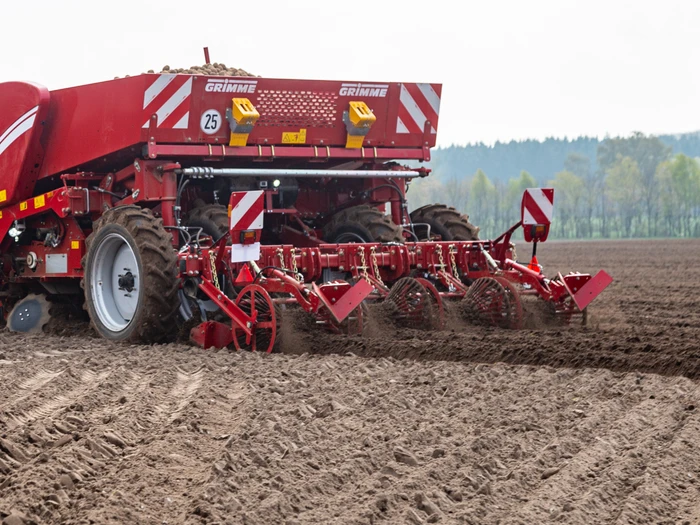 La planteuse à courroies à quatre rangs GB 430 est le bon choix pour une plantation rapide, efficace et douce des pommes de terre. L’élément planteur à courroie permet la plantation de plants non calibrés ou de variétés allongées Pour des tailles de plants appropriées et calibrées, il est possible d’atteindre des vitesses d’avancement élevées jusqu’à 10 km/h, ce qui entraîne une augmentation du débit de chantier. La GB 430 a été conçue pour la plantation conventionnelle sur buttes, mais également pour la plantation sur billons tamisés. Avec deux châssis différents, les machines peuvent être adaptées de manière optimale aux différentes formes et tailles de buttes. L’efficacité de la plantation peut être augmentée au maximum en combinant la fertilisation localisée, la formation des buttes, la protection contre l’érosion, l’application de granulés et la pulvérisation liquide pour le traitement du plant et du sillon. La machine peut également être équipée en option de systèmes Clever Planting et Section Control.