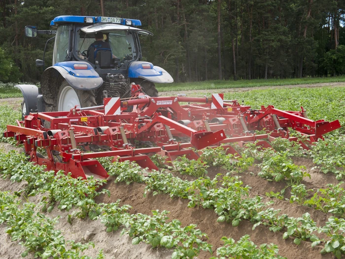 Le GH 6 est le buttoir idéal en cas de plantation avec une planteuse à 6 rangs ou dans les billons séparés. Le GH 6 est le bon choix, en particulier pour une utilisation sur des surfaces de taille moyenne à grande. Le buttoir 6 rangs est adapté pour les cultures en buttes avec un écartement allant de 75 à 91,4 cm. Pour un changement rapide de champ, le GH 6 peut être équipé en option d’un châssis à repliage hydraulique. Les buttoirs de la série GH permettent le buttage des buttes volumineuses pour la culture des pommes de terre et des légumes sur sols légers. Par rapport à une fraise-butteuse, les buttoirs effectuent un travail passif du sol. Cela permet d’économiser la puissance de traction et d’obtenir des surfaces de rendements supérieurs. Différentes dents sous-soleuses réglables en hauteur peuvent être utilisées pour ameublir le sol en fonction de sa nature. Afin d’apporter un soin optimal à la butte, la machine peut être adaptée avec une multitude d’options selon les conditions de sol. Les formeurs par rang permettent une utilisation jusqu’au bout des rangs. Jusqu’en bout de champ, les cultures en billons, comme les pommes de terre et les carottes, tolèrent peu la concurrence des mauvaises herbes. Par conséquent, une lutte efficace et précise contre les mauvaises herbes est nécessaire pour obtenir un bon rendement. Le buttoir GH Ecologique avec la technique de binage intégrée convient aux producteurs de pommes de terre et de légumes qui pratiquent le désherbage mécanique sans utiliser de pesticides chimiques et qui souhaitent en même temps réaliser des buttes.