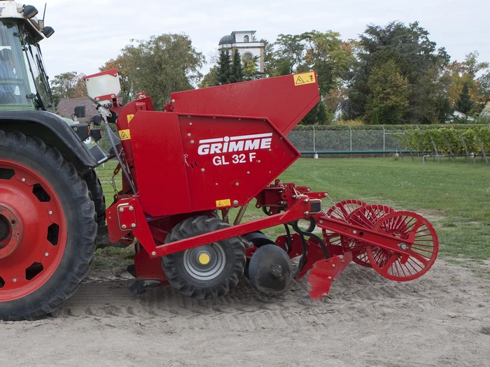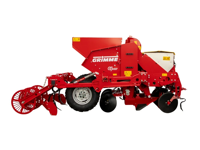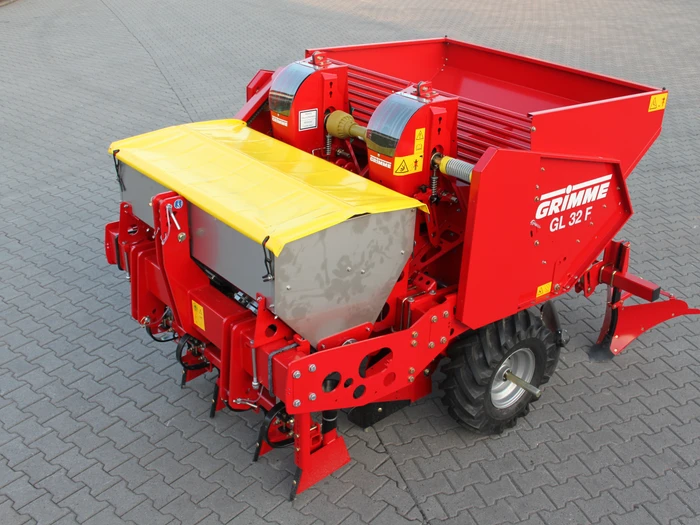 La GL 32 F séduit par ses multiples équipements comme la rehausse de trémie, le distributeur d’engrais, le dispositif de formation de buttes (diabolos formeurs ajourés ou cape formeuse) et une unité à fond mouvant. Elle convient idéalement pour la culture professionnelle des pommes de terre sur des petites surfaces. Pour obtenir une distance de plantation précise et régulière dans le champ, il convient de choisir l’élément planteur GRIMME. Les réglages multiples de la machine associés à un calibrage parfait des plants permettent une vitesse de plantation élevée. La GL 32 F est disponible de série avec un écartement à 75, 80, 85 ou 90 cm.