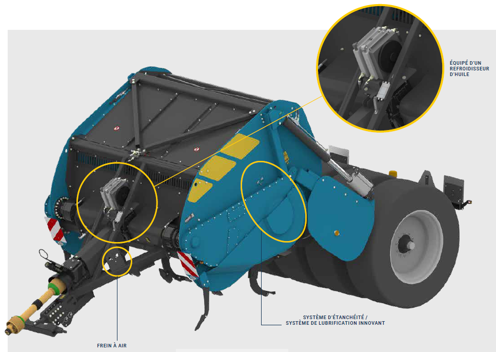 Toutes les rotobêches sont équipées d’une sécurité à cames sur le cardan. Cela permet de protéger la chaîne cinématique.