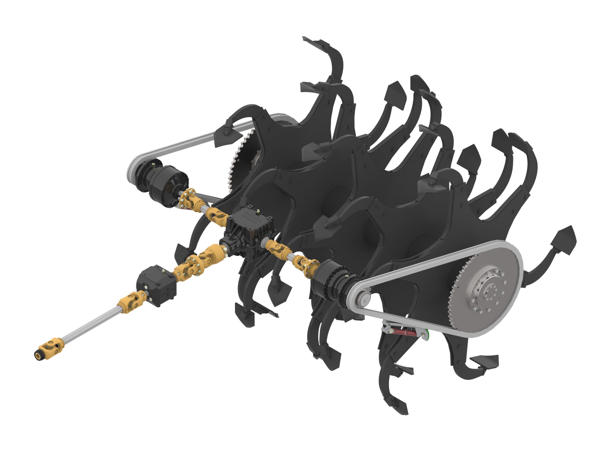 Les rotobêches profondes Imants sont des bêches rotatives. Elles travaillent le sol par l’aide d’un arbre de bêche qui est fixé à la bêche. Pour la série 135, 6 arbres de bêches forment une couronne (voir image). Le nombre de bêches sur le rotor varie en fonction du type et du largeur de travail.