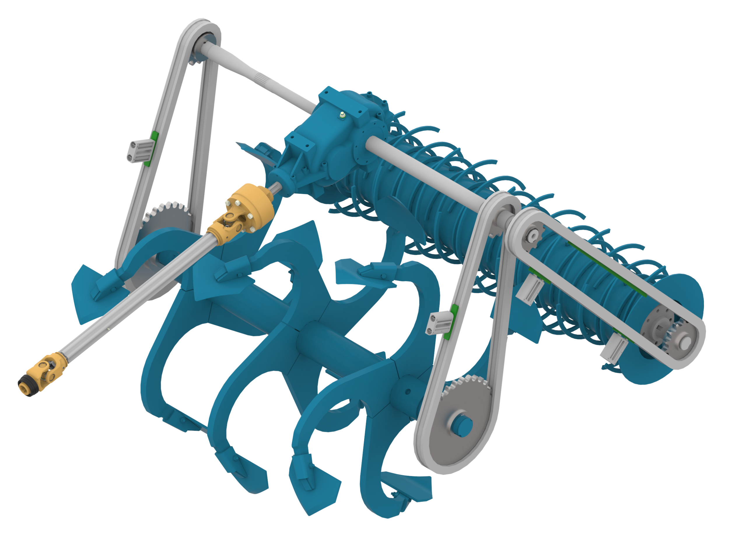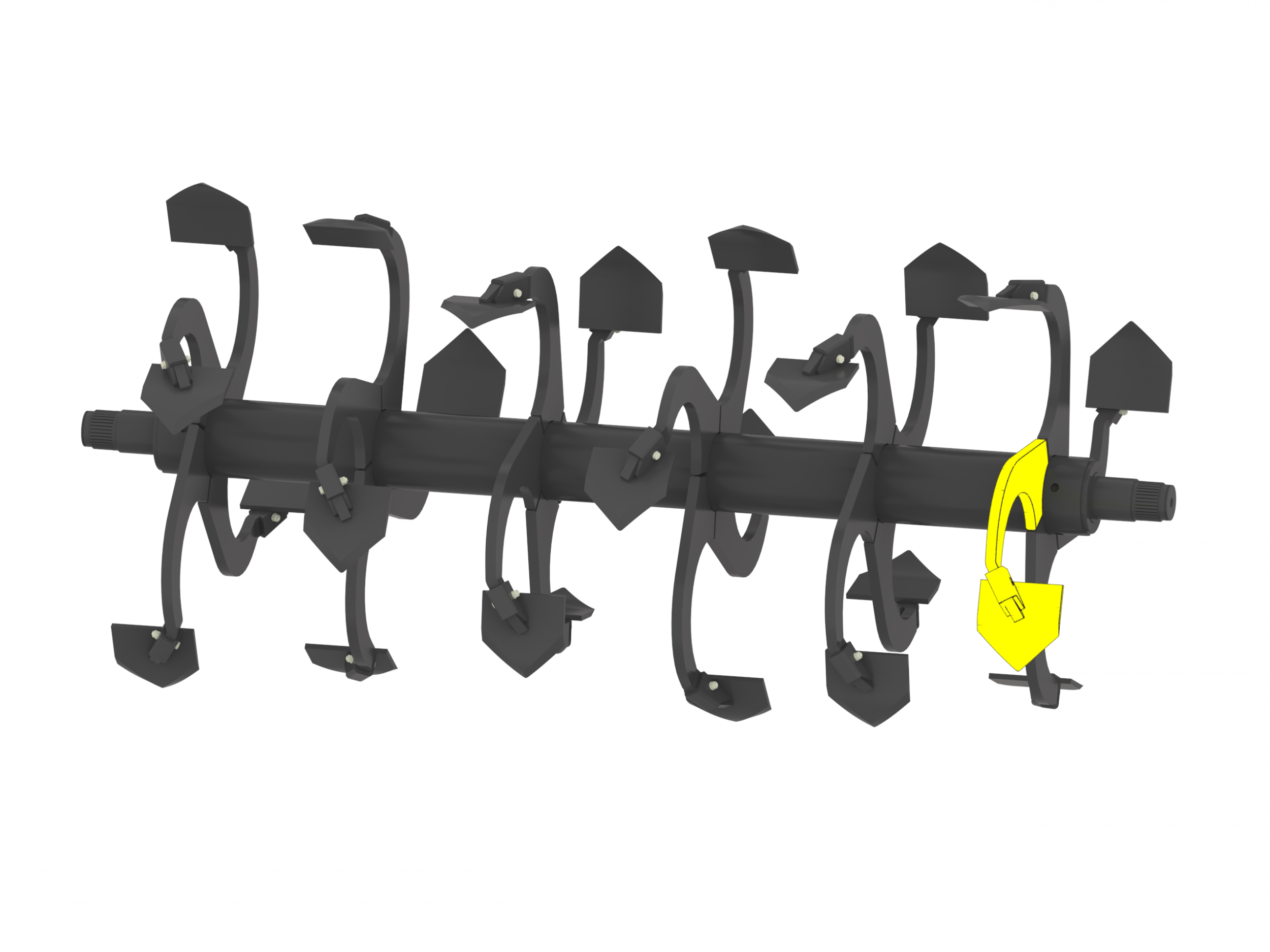 Les rotobêches profondes Imants sont des bêches rotatives. Elles travaillent le sol par l’aide d’un arbre de bêche qui est fixé à la bêche. Pour la série 60, 4 arbres de bêches forment une couronne (voir image). Le nombre de bêches sur le rotor varie en fonction du type et du largeur de travail.