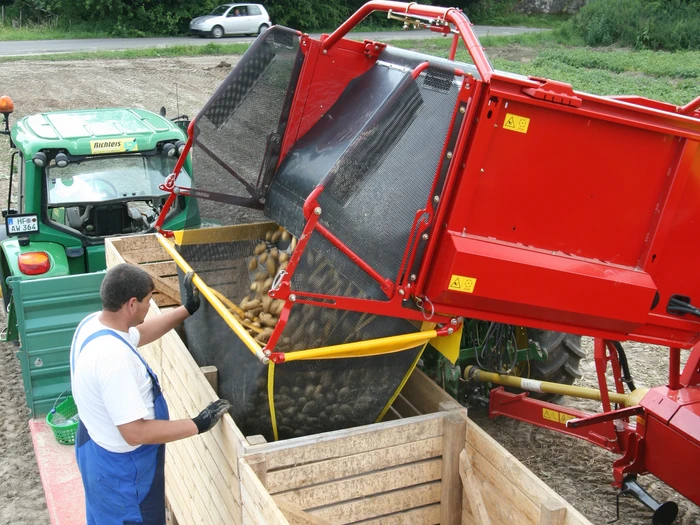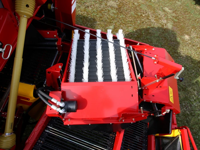 La SE 140 est une arracheuse à trémie à la fois maniable et performante. Avec la trémie de 4 tonnes, elle est spécialement conçue pour des zones de culture moyennes. A partir du bâti arracheur bien visible depuis le siège du conducteur, la récolte passe de la première à la seconde chaîne de tamisage. Grâce au principe éprouvé SE, le tamisage, la séparation des fanes et l’optimisation de la hauteur de chute ont lieu simultanément. Sont disponibles en option deux séparateurs différents pour la séparation des pierres et des mottes. Les déchets éventuels peuvent être écartés à la main grâce à la grande table de visite. La SE 140 est une machine très simple à utiliser, à régler et à entretenir de par sa conception compacte et éprouvée.