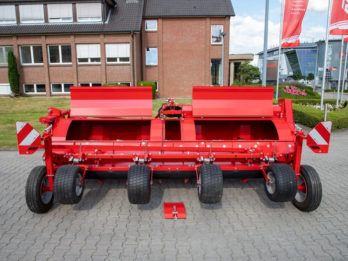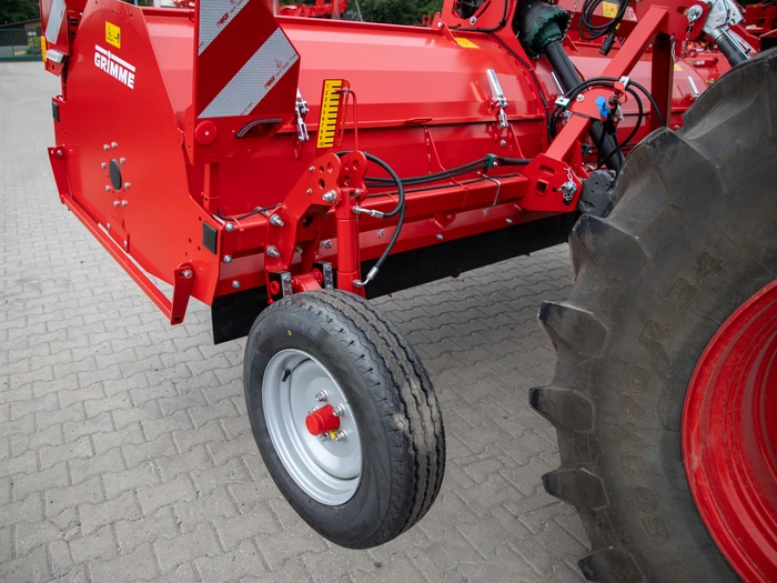 • En option, il est possible de sélectionner pour chaque rang des roule-buttes roulant sur le sommet de la butte après le broyage des fanes. La suspension individuelle permet une adaptation optimale à chaque rang. Grâce à leur pression extrêmement faible, les roues peuvent rouler de manière ciblée, pour colmater les fissures dans les buttes. Les pommes de terre sont ainsi protégée du rayonnement solaire direct, ce qui permet de réduire la proportion de tubercules verts dans les buttes de pommes de terre. Le foulage assure simultanément l’autonettoyage des roues.
