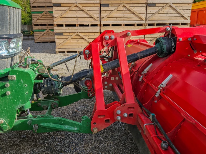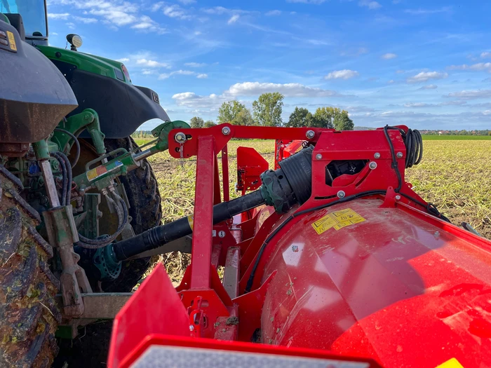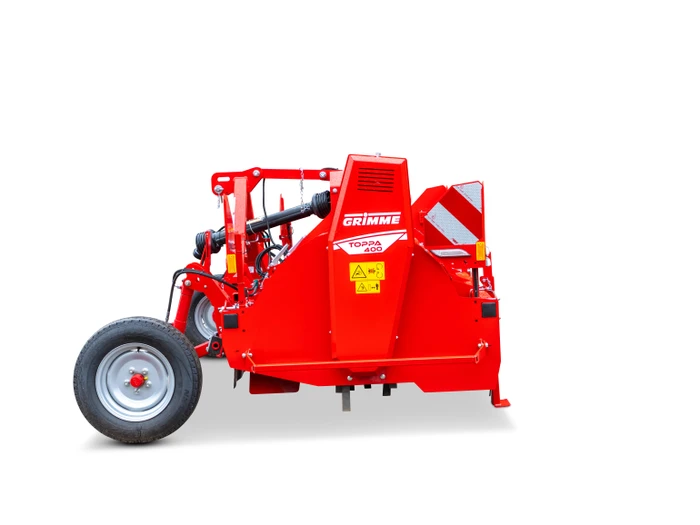 Pour favoriser une maturation homogène des tubercules, un broyage peut être effectué dans la culture de pommes de terre deux à trois semaines avant la récolte. En plus d’éviter de transmettre des infections virales des fanes aux tubercules, une résistance suffisante de la peau permet également d’améliorer l’aptitude au stockage. Avec le broyage des fanes, GRIMME propose une solution durable de remplacement ou de complément des préparations chimiques pour la dessiccation. Les fanes de pommes de terre sont broyées mécaniquement et déposées entre les buttes à l’aide d’un broyeur de fanes. Mais il est important de déposer soigneusement les fanes de pommes de terre entre les buttes. Surtout si les tiges des plants de pommes de terre doivent ensuite être traitées avec d’autres herbicides. Autre avantage : le risque de bourrage sur le bâti d’arrachage est réduit et le débit ainsi obtenu augmente avec des volumes de fanes très importants. Le TOPPA 400 permet de broyer les fanes de pommes de terre de quatre rangs dans un seul passage. L’attelage de la machine en solo est possible aussi bien à l’avant qu’à l’arrière. On peut également combiner le TOPPA 400 à l’avant avec le TOPPA 800 Combi en attelage arrière ce qui permettra de broyer jusqu’à huit rangs dans un seul passage. En plus des écartements de rangs et voies de roues usuels au niveau international, un équipement avec disposition des couteaux pour planches est également possible.