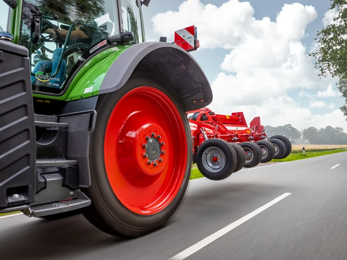 • Pour le transport sur route avec une largeur extérieure inférieure à 3 m, le TOPPA 400 dispose d’un châssis d’assemblage à trois points supplémentaire sur le côté extérieur gauche, dans le sens du déplacement. Ce dispositif de transport longitudinal permet, en l’espace de quelques minutes, de prendre la machine en position de transport et de la déplacer à une vitesse de transport illimitée. à l’encontre des systèmes traditionnels, l’utilisation d’un timon et le changement fastidieux des roues d’appui s’avèrent superflus.
