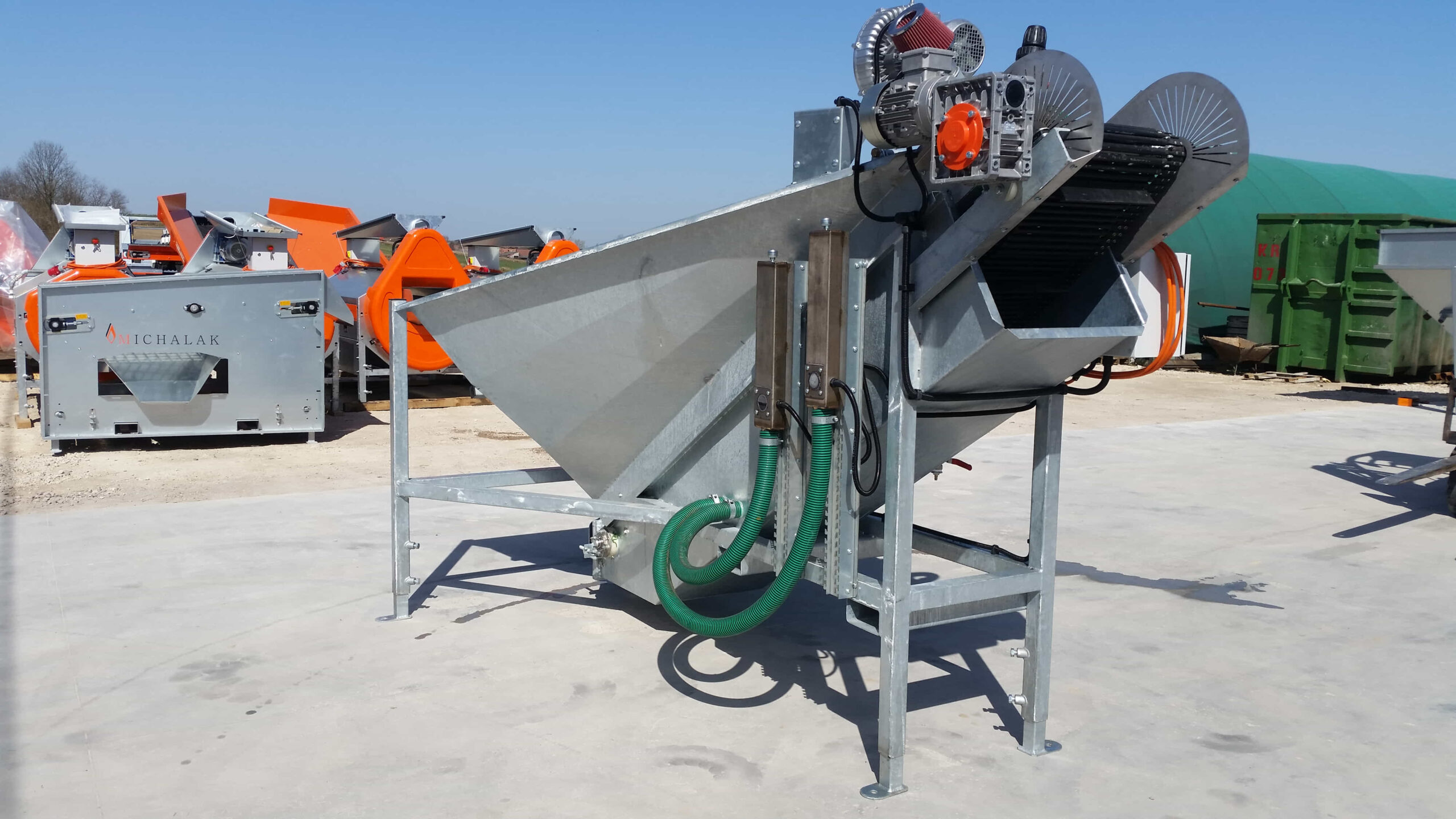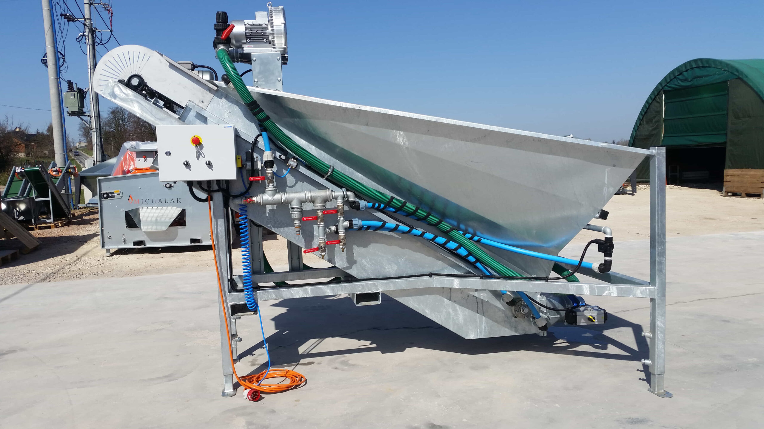 La machine est destinée au déchargement de légumes dans l’eau et assurer une réception en douceur, ainsi elle élimine le risque de choc de produits fragiles contre les parties métalliques de la trémie.
