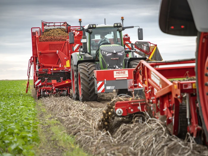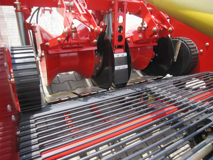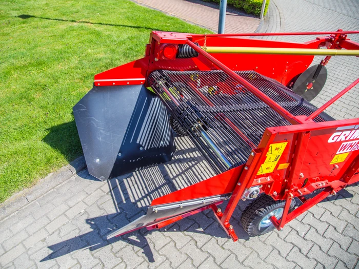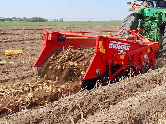 Les pommes de terre et autres plantes sarclées sont récoltées dans le monde entier selon différentes méthodes et degrés de mécanisation. Avec le WH 200, GRIMME propose une aligneuse portée conçue pour différentes fins d’utilisation. Grâce à sa manipulation facile et à la puissance minimale de 68 CV nécessaire au tracteur, le WH 200 est parfaitement adapté pour démarrer dans la mécanisation de la récolte de pommes de terre et autres plantes sarclées. Selon la version, la dépose de la récolte se fait au centre ou sur le côté derrière la machine. La dépose centrale est utilisée si les pommes de terre sont ramassées plus tard à la main. Le WH 200 peut être utilisé dans l’arrachage en méthode enrichie en combinaison avec une bande de dépose transversale. En l’occurrence, la récolte est déposée de côté sur deux rangs entre deux buttes voisines et ramassée en même temps par la suite. En plus de préserver la récolte et d’améliorer la performance de tamisage, la méthode enrichie permet d’augmenter considérablement le rendement de l’arracheuse de pommes de terre qui suit.